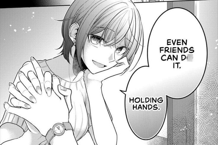 - The dialogue reads, “EVEN FRIENDS CAN DO IT. HOLDING HANDS.”