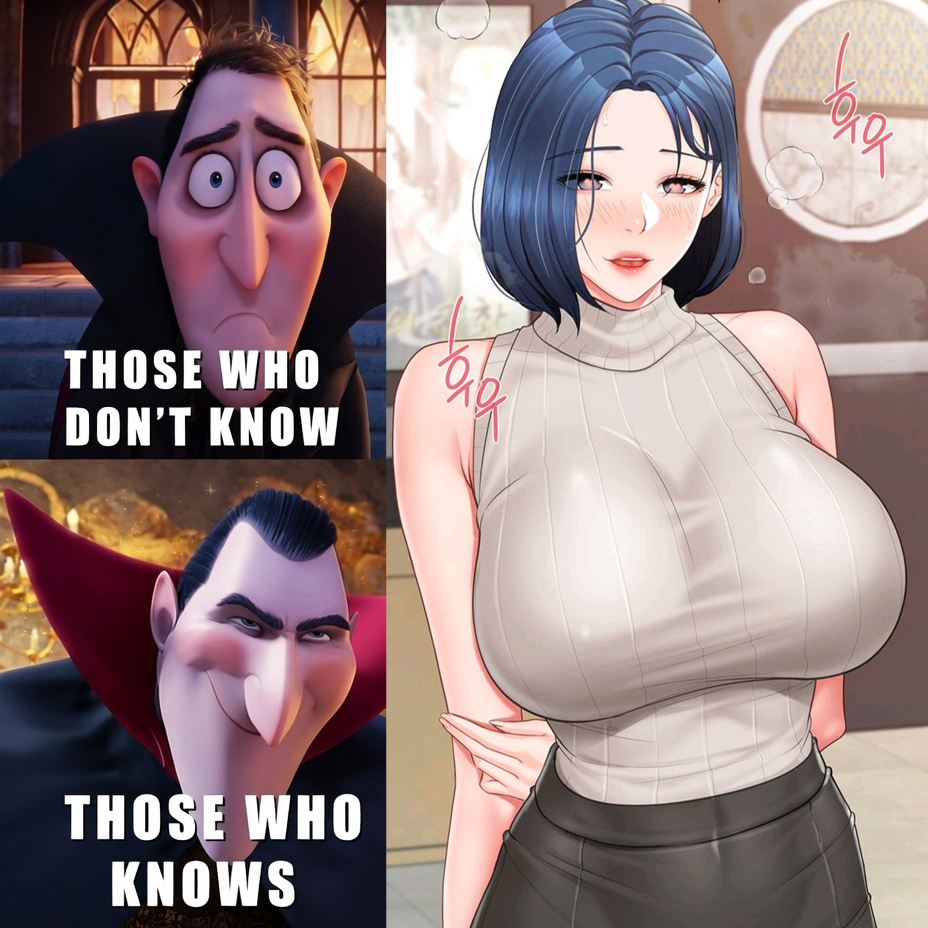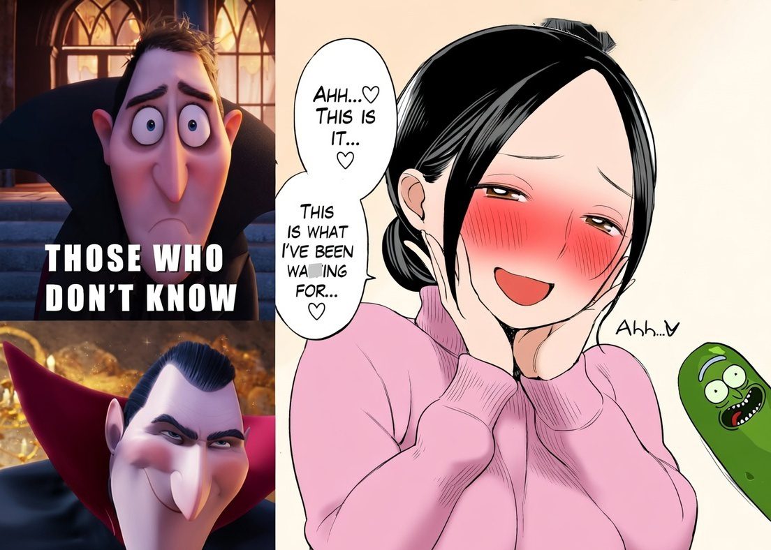 his meme uses a popular “Those Who Don’t Know / Those Who Know” format to contrast an innocent interpretation of the image with a more “in-the-know” or adult understanding. On the left, the character Dracula from Hotel Transylvania transitions from a worried expression to a knowing smirk, signaling that there is a hidden